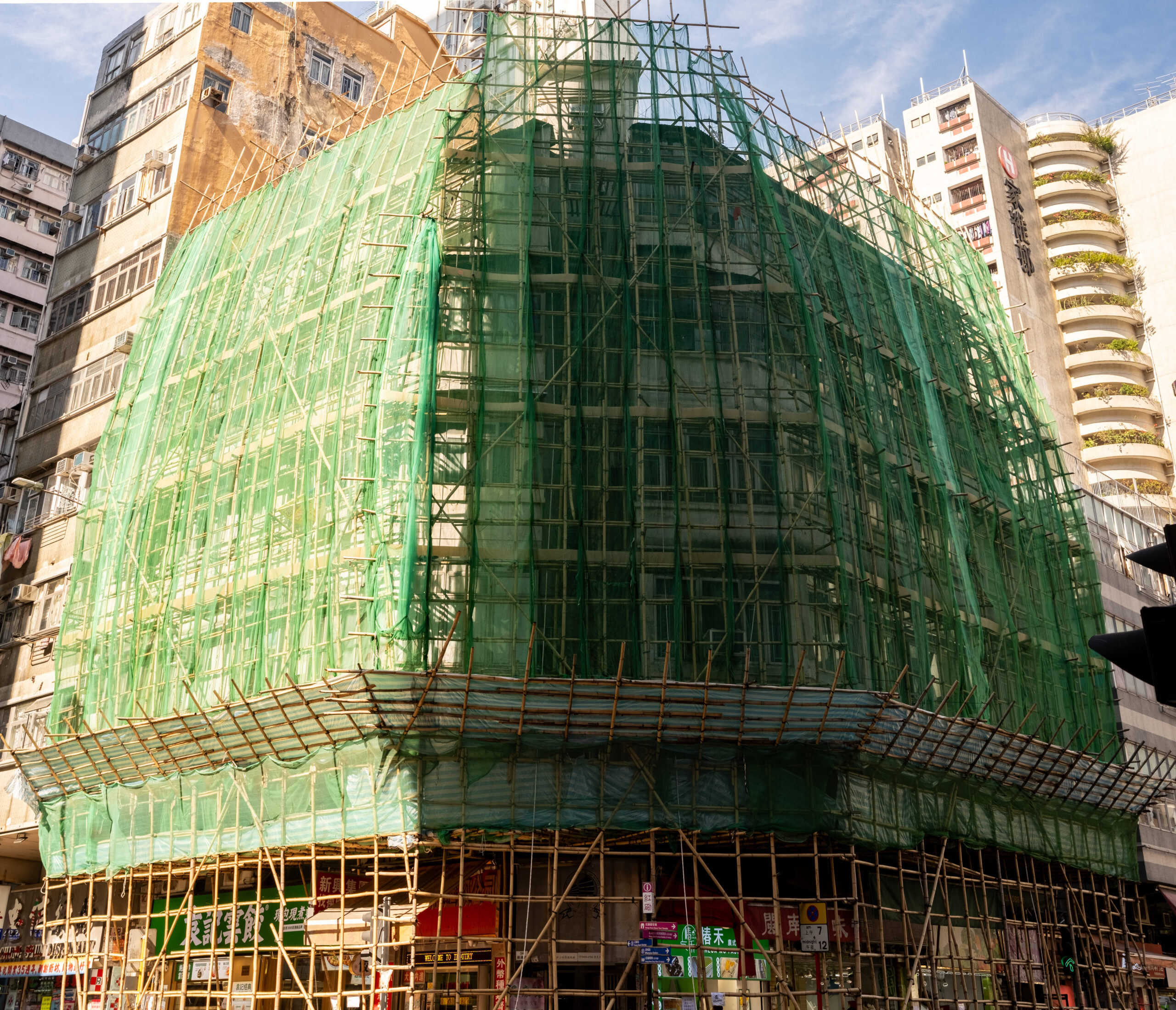 つぎの年には香港で少し進めつつ関係者向けのプログレス・ショーイングなどを行い、本番はまだ来年か〜笑と話していた。それから橋を作る材料となる建築現場の足場を作る竹のリサーチをかなり行った。街中には高層マンションでも竹で足場を作る技術が発達しているので、その形を眺めて回って、触れる部分に関してはどれくらいの強度なのかを確認することができた。香港の風景を語る上で重要なファクターである。